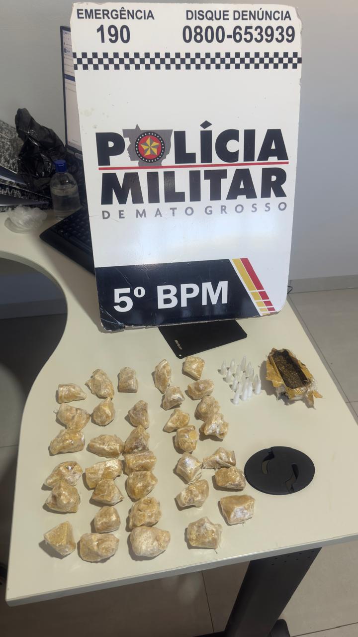 Os policiais se deslocaram até o endereço informado e encontraram o suspeito, que tentou fugir ao ver a chegada das viaturas militares. O homem foi abordado pelas equipes e identificado pela PM por já ter outras denúncias semelhantes na região.