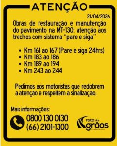 A MT-130 consolidou-se nos últimos anos como um dos principais corredores logísticos do estado, ligando áreas produtivas a polos de armazenamento e distribuição. Nesse contexto, a intensificação das obras reforça o compromisso da concessionária em acompanhar o ritmo de crescimento da região, garantindo que a infraestrutura esteja à altura das exigências do setor produtivo.