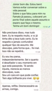 A vítima disse ainda que buscou apoio de colegas e superiores hierárquicos, mas não encontrou respaldo para formalizar a situação naquele momento. Posteriormente, procurou a polícia, registrou prints de mensagens e solicitou medida protetiva.